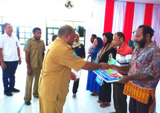 SEBANYAK 300 Kepala Keluarga (KK) di wilayah Distrik Kaimana mendapat Bantuan Stimulan Perumahan Swadaya (BSPS) program nasional Tahun 2019 senilai Rp.5.250.000.000. Bantuan diserahkan secara simbolis berupa buku tabungan kepada perwakilan penerima oleh Asisten I Setda Kaimana, Luther Rumpumbo, S.Pd, Selasa (22/10/2019).
