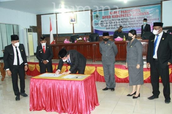 Pengesahan dilakukan setelah 4 Fraksi di DPRD Kabupaten Kaimana menyatakan menyetujui 5 Ranperda yang diusulkan Pemerintah Daerah, dan Bupati Kaimana juga menyetujui 2 Ranperda usul DPRD dalam sidang paripurna DPRD, Senin (20/9/2021) malam.