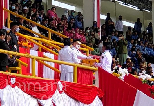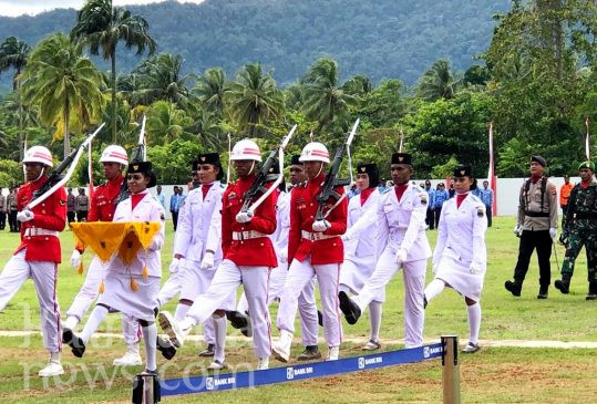 Upacara peringatan detik-detik proklamasi dan pengibaran bendera merah putih yang dimulai Pukul 09.00 WIT ini, berjalan aman, lancar dan tertib. Petang hari, upacara penurunan bendera akan dipimpin Wakil Bupati Kaimana, Hasbulla Furuada, SP. |RED|KN1|