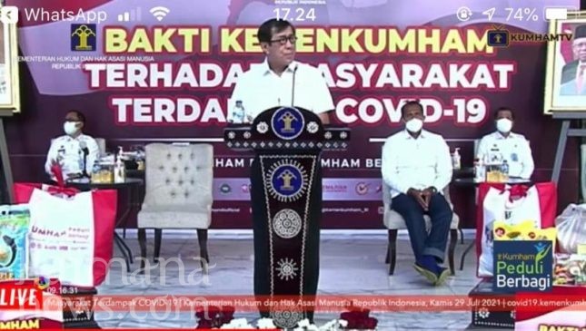 Terkait bantuan ini, Menteri Hukum dan HAM RI, Prof. Yasona Laoly dalam sambutannya yang disampaikan secara virtual mengatakan, penyaluran bantuan sosial berupa bahan kebutuhan pokok ini merupakan bentuk kepedulian jajaran Kementerian Hukum dan HAM terhadap masyarakat yang terdampak Covid-19.