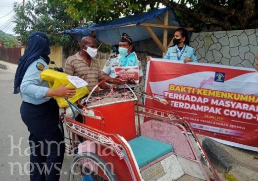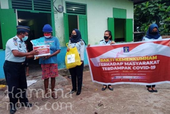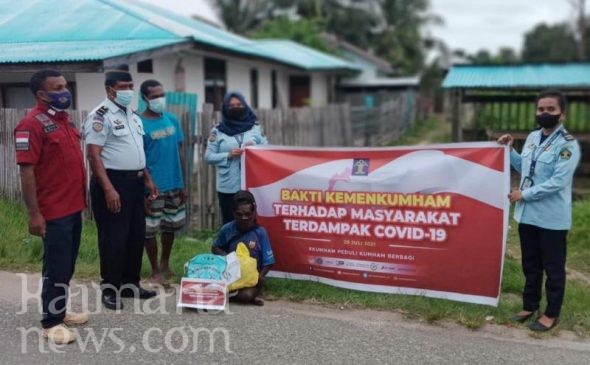 MENINDAKLANJUTI program ‘Kumham Peduli, Berbagi’ Kementerian Hukum dan HAM RI, Lembaga Pemasyarakatan (Lapas) Kelas III Kaimana menyalurkan bantuan sosial bahan kebutuhan pokok (Bapok) kepada masyarakat Kaimana yang terdampak Covid-19.