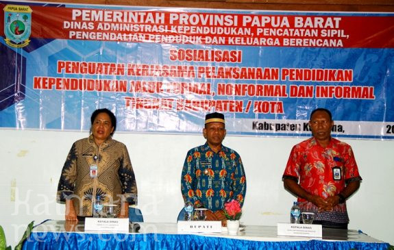 KAIMANANEWS.COM- Meningkatkan peran stakeholder, Dinas Administrasi Kependudukan Pencatatan Sipil Pengendalian Penduduk dan Keluarga Berencana Provinsi Papua Barat melaksanakan kegiatan penguatan kerjasama pendidikan kependudukan jalur formal, non formal dan informal di Kabupaten Kaimana, Kamis (7/7/2022).