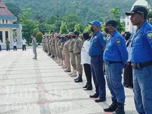 SATUAN Polisi Pamong Praja, Damkar dan Linmas, Rabu (19/5/2021) melaksanakan apel perdana di masa pemerintahan Bupati Freddy Thie dan Wakil Bupati Hasbulla Furuada, SP.