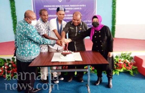 GERAKAN Mahasiswa Kristen Indonesia (GMKI) Cabang Kaimana menggelar syukuran Dies Natalis ke-XV, yang sekaligus dipadu dengan pembukaan Maper dan Pelantikan Panitia Konferensi Cabang III Tahun 2021, Jumat (28/5/2021).