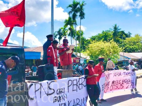 Adapun 12 tuntutan yang disampaikan dalam aksi damai dimaksud, diantaranya adalah; meminta agar penerimaan CPNS benar-benar dilakukan secara transparansi dengan mengikuti aturan atau kebijakan yang telah dikeluarkan oleh pemerintah daerah, serta agar ketentuan pindah domisili sejak 15 September untuk kepentingan penerimaan CPNS agar benar-benar diindahkan oleh dinas terkait.