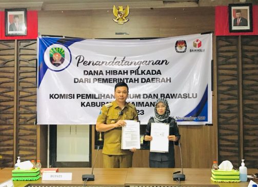 Pengalokasian dana ditandai penandatanganan Naskah Perjanjian Dana Hibah (NPHD) antara Bupati Kaimana, Ketua KPU Kaimana dan Ketua Bawaslu Kaimana, Senin (6/11/2023).