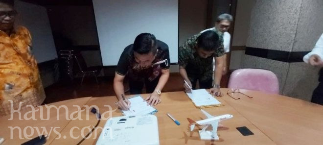 “Mungkin banyak yang mempertanyakan perihal kerja sama antara Pemda Kaimana dengan PT. Batik Air. Saya sampaikan disini, tadi malam saya dengan Direktur Niaga Lion Group sudah melakukan penandatanganan Perjanjian Kerja Sama (PKS) sebagai tindaklanjut nota kesepahaman (MoU) yang sudah kita laksanakan sebelumnya,” ujar Bupati.