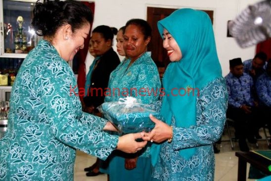KAIMANA- Sesaat setelah pelantikan pejabat eselon II, III dan IV, termasuk didalamnya para kepala distrik oleh Bupati Kaimana, Ketua Tim Penggerak PKK Kabupaten Kaimana Ny. Elita Cony Mairuma juga melantik Ketua Tim Penggerak PKK untuk 5 distrik dalam wilayah Kabupaten Kaimana.