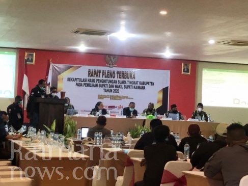 RAPAT pleno rekapitulasi hasil penghitungan suara pemilihan Bupati dan Wakil Bupati Kaimana Tahun 2020 tingkat Kabupaten Kaimana resmi digelar, Selasa (15/12/2020).