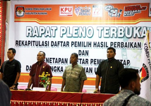 KAIMANA- Komisi Pemilihan Umum Kabupaten Kaimana, Selasa (21/8/2018) petang, menetapkan jumlah Daftar Pemilih Tetap (DPT) Kabupaten Kaimana untuk Pemilihan Umum Tahun 2019 sebanyak 31.262, dengan rincianb; 15.916 laki-laki dan 15.346 perempuan.
