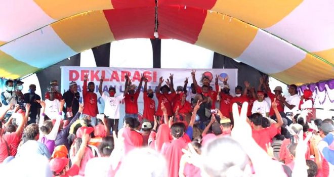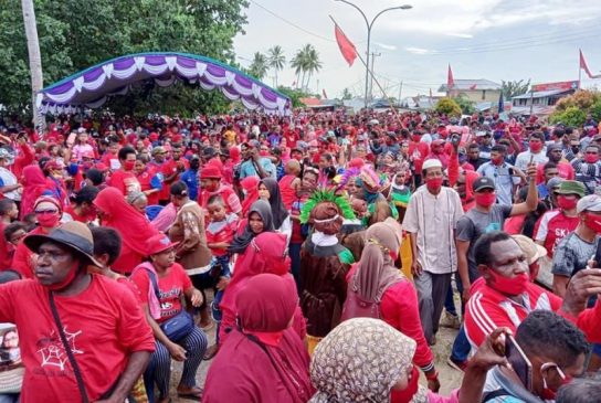 Deklarasi ini sendiri diawali prosesi penjemputan terhadap Calon Bupati Rita Teurupun dan Calon Wakil Bupati Leonardo Syakema dari kediaman Cabup Rita di Kampung Trikora.