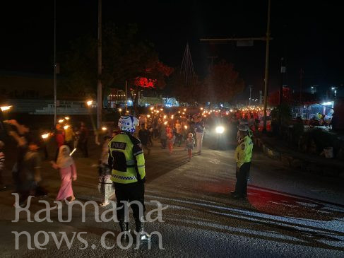 Dalam kegiatan ini, Polres Kaimana menurunkan 56 personel termasuk Satuan Lalulintas untuk mengamankan jalannya takbiran keliling dan pawai obor.