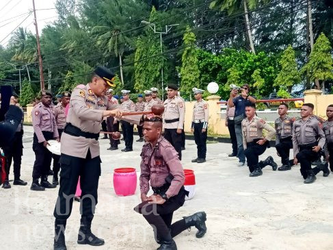 Kedatangan bintara baru bersama dengan sejumlah Bintara pindahan dari Samapta Polda Papua Barat pada Sabtu (14/6/2025) ini, disambut tradisi penyiraman kembang oleh Kapolres Kaimana AKBP Satria Dwi Dharma bersama sejumlah Pejabat Utama Polres Kaimana, dilanjutkan dengan mandi di air laut. Tradisi ini dilakukan usai upacara penyambutan.