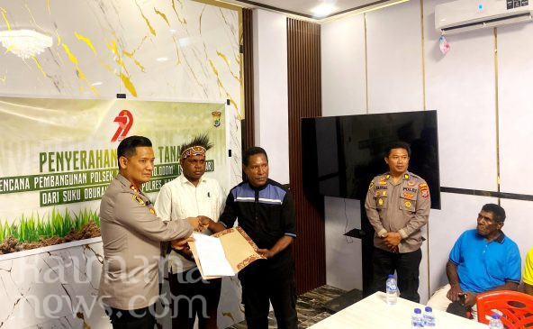 Hibah tanah dimaksud diterima langsung oleh Kapolres Kaimana AKBP Satria Dwi Dharma, S.I.K dalam acara penyerahan yang berlangsung di Ruang Rapat Sarja Arya Racana Polres Kaimana, Rabu (18/6/2025).