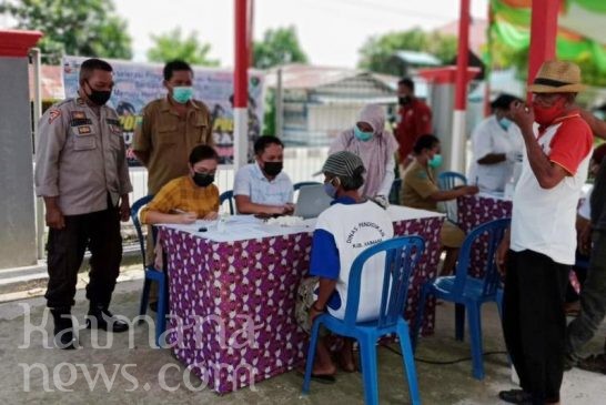 KEPOLISIAN Resor Kaimana bekerjasama dengan Dinas Kesehatan Kabupaten Kaimana melakukan pelayanan vaksinasi Covid-19 kepada masyarakat di lingkungan RT.
