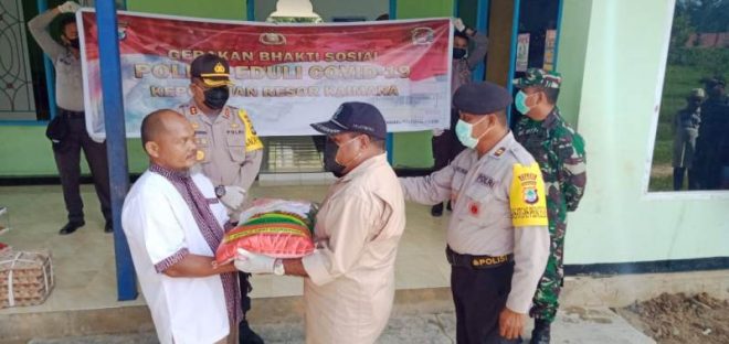 Penyerahan bantuan, Selasa (21/4/2020), dilakukan langsung oleh Kapolres Kaimana AKBP Iwan P. Manurung bersama Dandim 1804/Kaimana Letkol Inf. Pomalanton Budiaraja Tambunan dan Pemerintah Daerah diwakili Asisten I Setda Kaimana, Luther Rumpumbo.