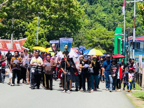 KAIMANANEWS.COM- Sedikitnya 14 kelompok yang terdiri dari 13 lingkungan doa dan dewan paroki dalam wilayah Gereja Katolik Santo Martinus Kota Kaimana melaksanakan jalan salib hidup merayakan Jumat Agung dengan memikul salib Yesus secara estafet, Jumat (7/4/2023).