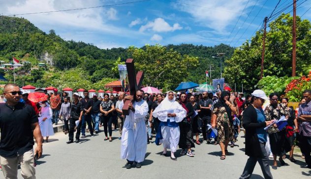 Pantauan Kaimana News.Com, jalan salib hidup yang turut diikuti ratusan umat Katolik ini diawali prosesi misa pembukaan yang dipimpin pastor RD. Andre Era, O.Carm.