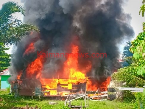 KAIMANA- Sebuah rumah yang ditinggalkan sementara oleh penghuninya di Jalan Utarom Kampung Trikora ludes dilalap jago merah, Minggu (6/1/2019).