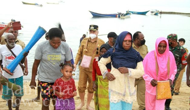 “Saya mau seperti di Kampung Muri. Begitu program 4 M masuk, mereka bilang ke kepala dinas untuk tolong sampaikan ke Bupati bahwa kami tidak mau rumah papan lagi, kami mau rumah permanen. Saya kemudian panggil Inspektorat, BPKAD dan Dinas terkait untuk diskusi karena di program itu sebutnya rehab rumah. Dari diskusi itu lahirlah keputusan boleh bangun baru, tapi lantai flur saja, pintu tripleks dan jendela kaca loper. Kepala desa belum puas katanya kita mau pasang tegel. Kita katakan kalau minta pasang tegel berarti pasir dan batu gratis supaya kompensasinya itu di tegel. Mereka katakan siap,” cerita Bupati dihadapan masyarakat Buruway.