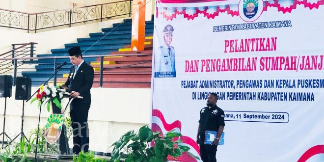 KAIMANANEWS.COM – Bupati Kaimana, Freddy Thie, Rabu (11/9/2024) memimpin pelantikan dan pengambilan sumpah jabatan 20 pejabat administrator dan pengawas, serta kepala puskesmas pada lingkungan Pemerintah Kabupaten Kaimana. Pelantikan dan pengambilan sumpah janji yang dilaksanakan di Gedung Olahraga (GOR) Kaimana ini, didasarkan pada Keputusan Bupati Kaimana Nomor: 821.2/02 tentang …