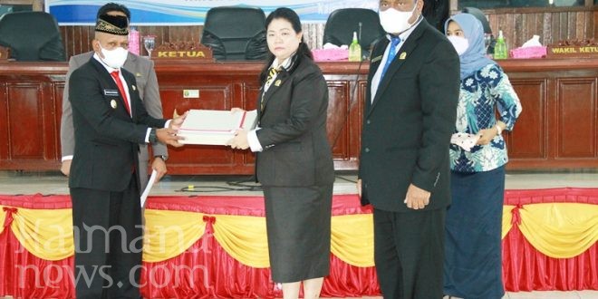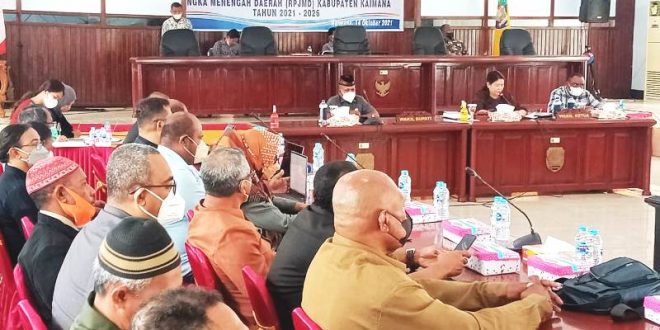 KAIMANANEWS.COM- Wakil Bupati Kaimana, Hasbulla Furuada,SP mewakili Bupati Kaimana menyerahkan dokumen Rancangan Peraturan Daerah (Ranperda) Rencana Pembangunan Jangka Menengah Daerah (RPJMD) Kabupaten Kaimana Tahun 2021-2026 kepada DPRD untuk disahkan menjadi Peraturan Daerah. Penyerahan berlangsung dalam Rapat Paripurna DPRD Kabupaten Kaimana tentang Penetapan dan Persetujuan serta Pengesahan Terhadap Ranperda RPJMD Kabupaten …