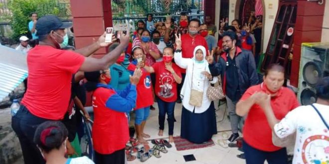 PADUAN suara seruling dan gendang yang dimainkan sekelompok warga meriahkan kedatangan pasangan Calon Bupati dan Wakil Bupati, Rita Teurupun-Leonardo Syakema (RISMA) di RT Jalan Suci, Kelurahan Kaimana Kota, Rabu (7/10/2020). Sebelumnya, masih di Kelurahah Kaimana Kota, kemeriahan yang sama juga ditunjukkan para pendukung dan simpatisan di RT Palapa, Pasir Panjang …