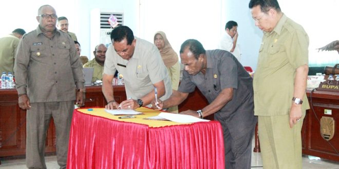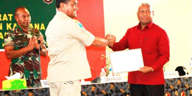 TAHAPAN pemilihan kepala kampung serentak pada 84 kampung se-Kabupaten Kaimana tahun 2019 resmi dimulai dan dibuka secara resmi oleh Bupati Kaimana, Drs. Matias Mairuma, Jumat (30/8/2019). Pembukaan kegiatan yang berlangsung di Gedung Pertemuan GPI Rehobot ini, ditandai penyerahan dokumen regulasi pemilihan kepala kampung oleh Bupati didampingi Kepala Dinas PMK …