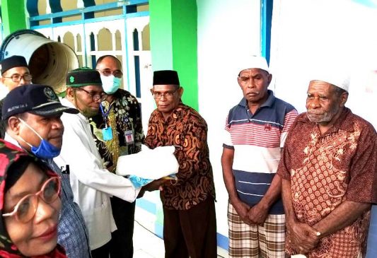 Penyerahan bantuan dilakukan secara simbolis oleh Ketua Majelis Ulama Indonesia (MUI) Kaimana Ust. Zein Farisa kepada para pengurus masjid dan musholla se-Kaimana bertempat di Masjid Nurul Fallah, Bumsur, Sabtu 23/5/2020).