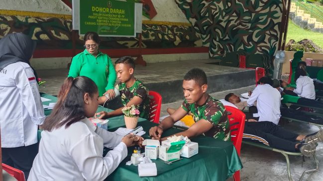 Letda Batalyon 764/IB Wilhan Gerpa mengatakan, kegiatan donor darah yang dilakukan ini sebagai wujud kepedulian sosial TNI kepada sesama, dalam rangka menyambut HUT-79 Persit Kartika Chandra Kirana ranting 4 Yonif 764 Cabang XX Brigif 26 PD XVIII Kasuari.