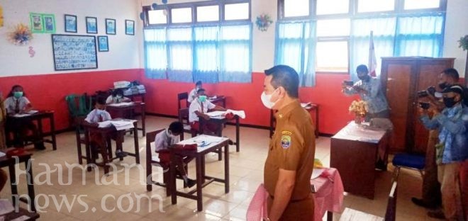 BUPATI Kaimana Freddy Thie, Selasa (4/5/2021), menyempatkan diri memantau pelaksanaan Ujian Akhir Sekolah (UAS) hari pertama di SD Negeri 01 dan SD Negeri 02 Kaimana.