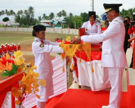 BUPATI Kaimana, Drs. Matias Mairuma tampil sebagai Inspektur Upacara (Irup) pada peringatan Detik-Detik Proklamasi Kemerdekaan RI yang ke-74, Sabtu (17/8/2019). Upacara yang dipusatkan di Stadion Triton Bantemi ini mengusung tema nasional “SDM Unggul Indonesia Maju.”