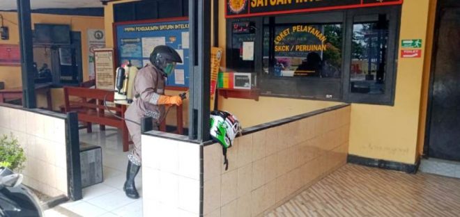 Pantauan media ini, tak hanya ruangan-ruangan di Polres saja yang disemprot cairan disinfektan tetapi juga pakaian aparat kepolisian juga akan disemprot cairan tersebut.