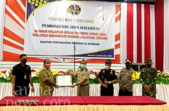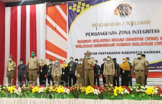 BADAN Pertanahan Nasional Kabupaten Kaimana, Senin (30/11/2020) melakukan pencanangan dan mendeklarasikan pembangunan zona integritas menuju Wilayah Bebas Korupsi (WBK) dan Wilayah Birokrasi Bersih Melayani (WBBM).