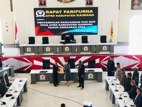 KAIMANANEWS.COM- Pemerintah Kabupaten Kaimana, Senin (29/1/2024) resmi menyerahkan dokumen Kebijakan Umum Anggaran dan Prioritas Plafon Anggaran Sementara (KUA-PPAS) APBD Tahun 2024 kepada DPRD.