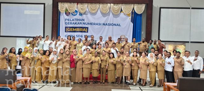 KAIMANANEWS.COM – Dinas Pendidikan Pemuda dan Olahraga Kabupaten Kaimana menggelar Pelatihan Gerakan Numerasi Nasional (Gembira) bagi guru Sekolah Dasar (SD) dan Sekolah Menengah Pertama (SMP) di Graha Santo Martinus Kaimana, Selasa (28/4/2026).