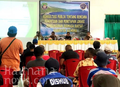 KAIMANANEWS.COM- Bertempat di Aula GKI Solafide Krooy, Selasa (24/5/2022), Dinas Perhubungan Kabupaten Kaimana menggelar kegiatan konsultasi publik penentuan dan penetapan lokasi pembangunan dermaga rakyat.