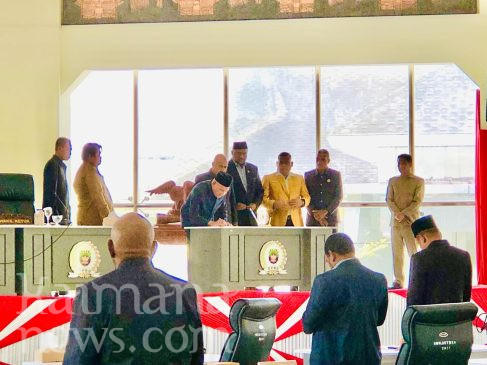 “Kami menyambut baik dan menyampaikan terima kasih yang sebesar-besarnya kepada Fraksi-Fraksi yang telah menyatakan menerima dan menyetujui Rancangan Peraturan Daerah tentang Perubahan APBD Tahun Anggaran 2025, baik tanpa catatan maupun dengan catatan. Keputusan ini merupakan wujud nyata dari sinergitas dan kebersamaan antara Eksekutif dan Legislatif dalam mewujudkan tata kelola pemerintahan yang baik demi kepentingan masyarakat,” ujar Bupati dilanjutkan dengan penandatanganan berita acara persetujuan bersama unsur pimpinan DPRK. |isw|