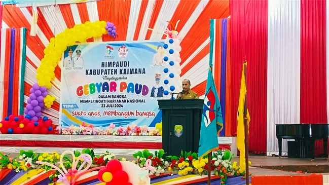 KAIMANANEWS.COM- Gebyar PAUD dan Gebyar TK warnai perayaan Hari Anak Nasional (HAN) Tahun 2024 di Kabupaten Kaimana, Selasa (23/7/2024).