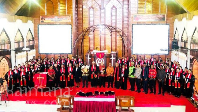 KAIMANAMEWS.COM – Bupati Kaimana, Hasan Achmad menyampaikan selamat kepada 64 pelayan firman dan sakramen GPI Papua yang baru ditahbiskan. Pentahbisan sebutnya, mempunyai arti penting bagi pekerjaan pelayanan gereja, tetapi juga bagi penyelenggaraan pemerintahan di Tanah Papua khususnya di Kabupaten Kaimana.