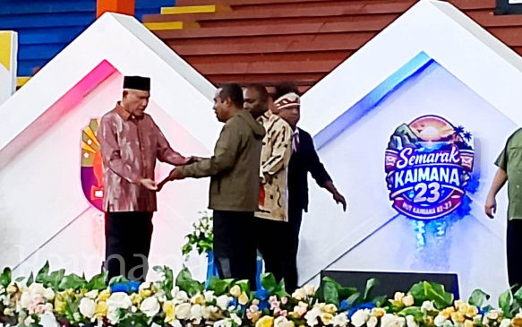 Penghargaan diserahkan secara simbolis oleh Bupati Kaimana Hasan Achmad bersama Wakil Bupati Isak Waryensi dan diterima oleh Kepala Distrik Kaimana, Aris Bernard Fenetiruma pada acara puncak HUT Kabupaten Kaimana ke-23, Sabtu (25/4/2026) malam.