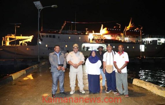 Wabup Ismail Sirfefa didampingi sekda dan Kadis Perhubungan saat menyambut kedatangan kapal