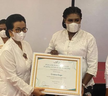 Piagam penghargaan yang ditandatangani Pembina Oase, Ny. Iriana Joko Widodo dan Ny. Wury Ma’ruf Amin ini, diterimanya pada acara puncak peringatan Hari Kartini Tahun 2022 tingkat Provinsi Papua Barat di Manokwari, Kamis (21/4/2022).