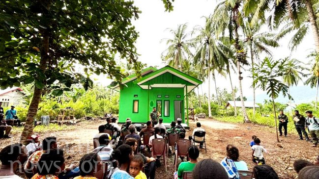 Dalam agenda kunjungan, Ketua Tim Wasev juga melaksanakan tatap muka bersama masyarakat Kampung Sisir di lokasi pembangunan rumah yang menjadi salah satu sasaran fisik TMMD ke-127 Kodim 1804 Kaimana.