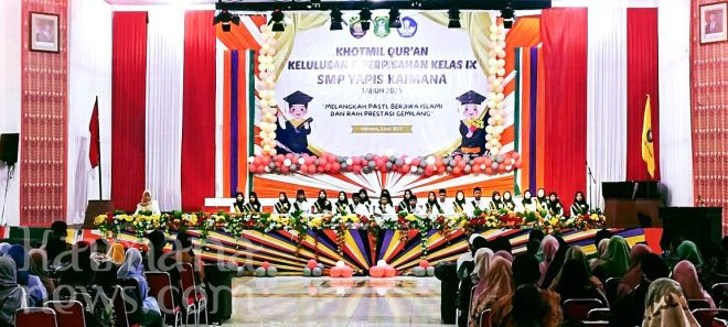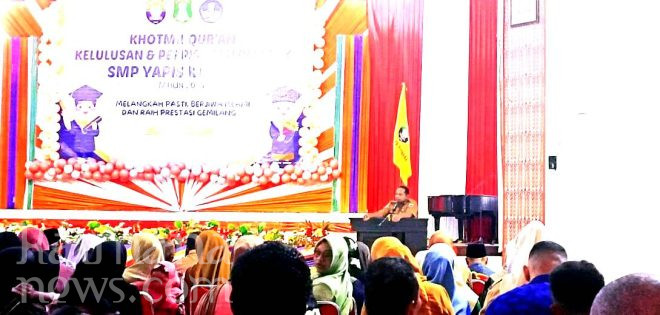 KAIMANANEWS.COM – Sekolah Menengah Pertama Yapis Kaimana menggelar pengumuman kelulusan dan perpisahan Kelas IX Angkatan 38 di Gedung Pertemuan Krooy, Senin (2/6/2025). Kegiatan diawali Khotmil Qur’an oleh siswa-siswi Kelas IX.