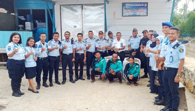 Setelah beristirahat sejenak di VIP Room Bandara Utarum, Kakanwil dan rombongan didampingi Kepala Lapas Kaimana dan staf berrtolak menuju Pondok Asimilisasi Kemandirian WBP Penjemuran Ikan Teri/Puri Binaan Lapas III Kaimana di Pantai Bantemi.