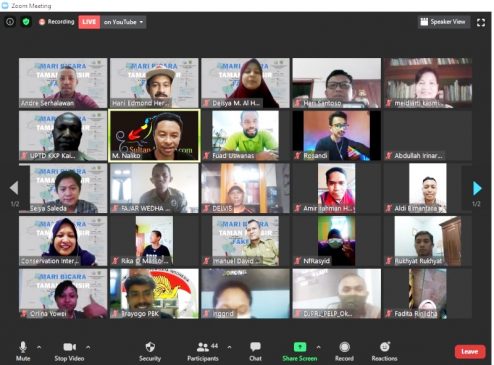 Fakfak, Papua Barat – Guna meningkatkan pengetahuan dan pemahaman public Fakfak tentang Kawasan Konservasi Pesisir dan Pulau-Pulau Kecil Teluk Berau dan Teluk Nusalasi-Van Den Bosch yang dikenal dengan Taman Pesisir Fakfak, komunitas muda konservasi Fakfak yang terdiri dari komunitas Fakfak Mengajar (FM), Kitong Bisa Learning Centre (KBLC) Fakfak, dan Conservation International Indonesia dibawah koordinasi UPTD Pengelolaan KKP Kaimana-Fakfak sebagai pengelola Taman Pesisir Fakfak menggelar Webinar dengan tema “Mari Bicara Taman Pesisir Fakfak.”