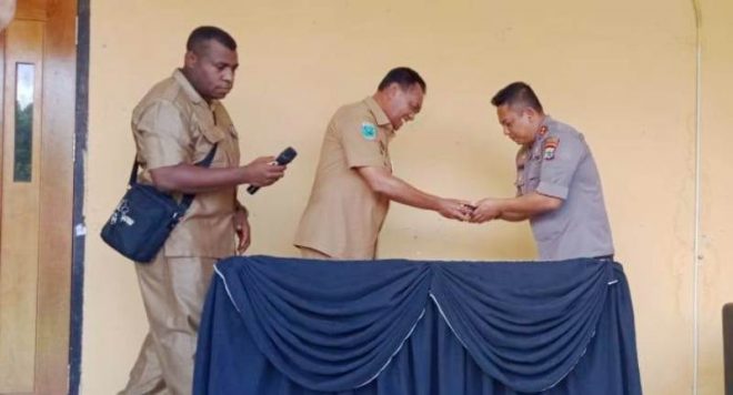 Penyerahan dilakukan secara simbolis oleh Bupati Kaimana Matias Mairuma dan diterima langsung oleh Kapolres Kaimana Iwan P. Manurung, SIK disela kegiatan pencanangan zona integritas menuju Wilayah Bebas Korupsi dan Wilayah Birokrasi Bersih dan Melayani di Ruang Video Conference Polres Kaimana, Senin (2/3/2020).