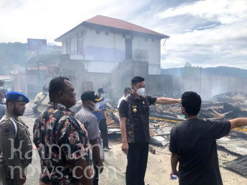 KAIMANANEWS.COM- Bupati Kaimana, Freddy Thie bersama Wakil Bupati, Hasbulla Furuada, Jumat (8/4/2022) menyempatkan diri meninjau lokasi pasca kebakaran yang menghanguskan 7 unit bangunan tempat usaha dan rumah tinggal di Jalan Utarum Krooy.