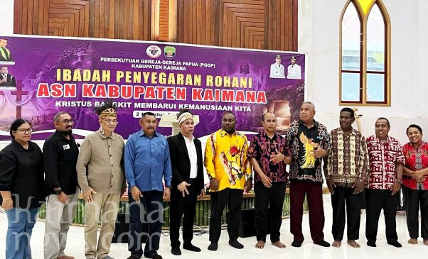 KAIMANANEWS.COM – Pemerintah Kabupaten Kaimana, Jumat (24/4/2026) menggelar Halal Bi Halal dan Penyegaran Rohani bagi ASN Islam, Kristen Katolik dan Kristen Protestan dari seluruh OPD dalam Lingkungan Pemerintah Kabupaten Kaimana.